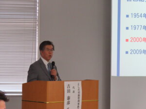 ◆日 時:3月24日(火)14:00~17:30 ◆会 場:同友会ホール ◆参加者:33名(受講生19社から22名、世話人11名) ◆テーマ:感謝する生き方 ◆報告者:よしだ労務管理事務所 代表 吉田 泰彦 氏